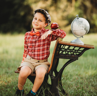 I had a handsome lil' fella, Levi, as my client who is going into Kindergarten! Kids are sometimes a challenge for sessions, but I always have some tricks in my pocket to avoid photo disasters. I always allow small humans to fidget with props as a way to come out of their shell and feel engaged. I told him to spin the globe and VOILA! An adorable pose as his eyes lit up watching it spin. I asked if he knew where Florida was and I pointed that out to him to keep him interested.
